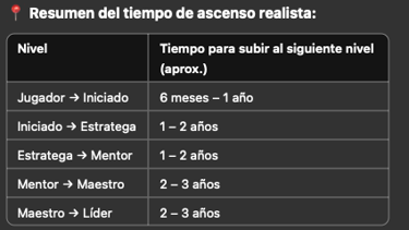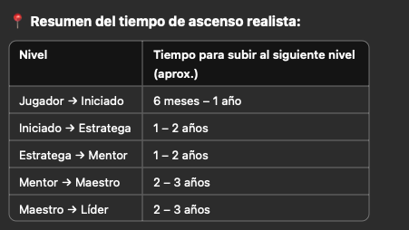Ascensos superiores (Mentor a Maestro y Líder):